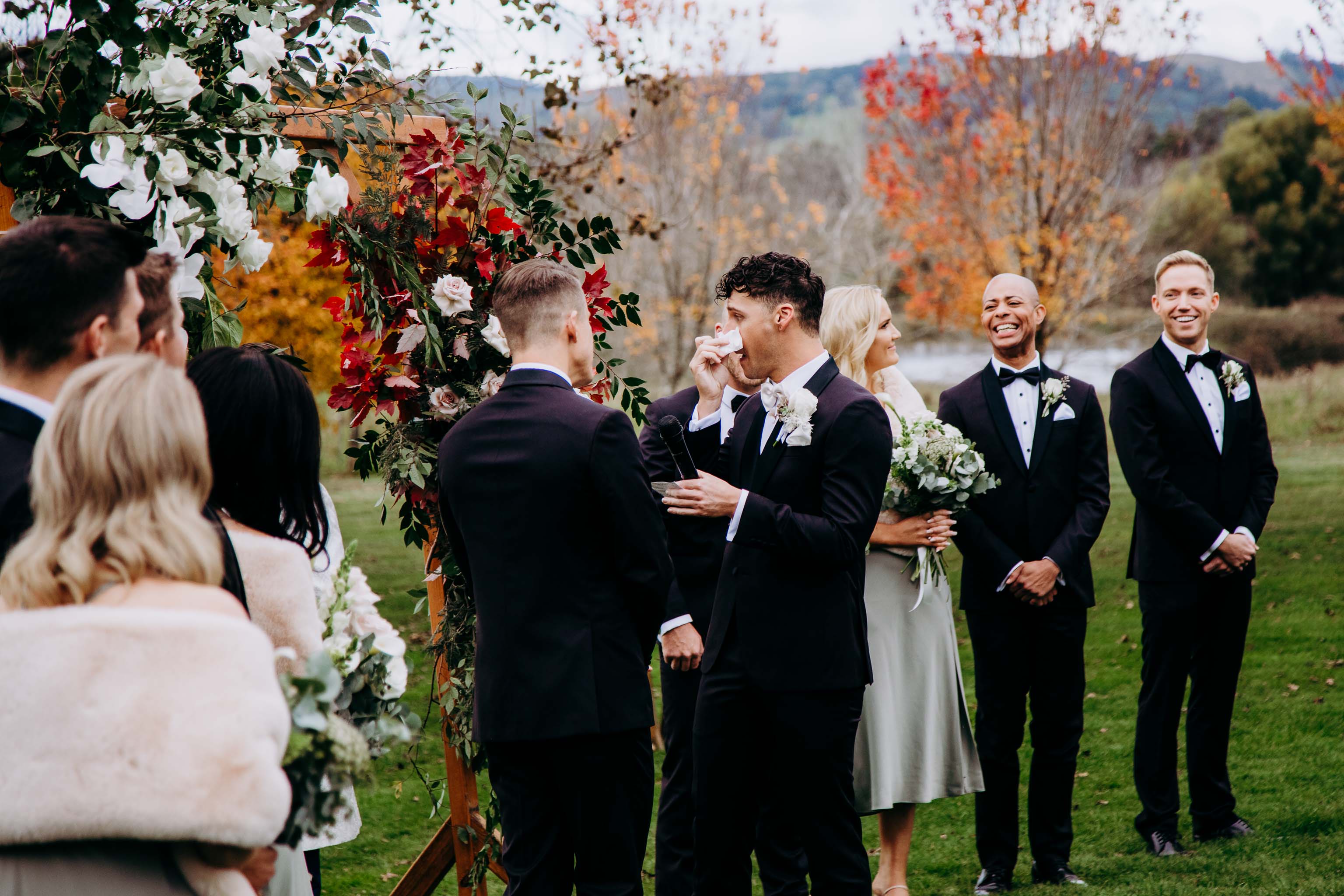 Luscious green grass, fresh air, leaves turning, an autumn chill in the air and yet an abundance of warmth all around. Ryan and Aaron became husband and husband in April 2022 in a breathtaking ceremony at Waldara Farm nestled in the hills of Oberon, NSW.